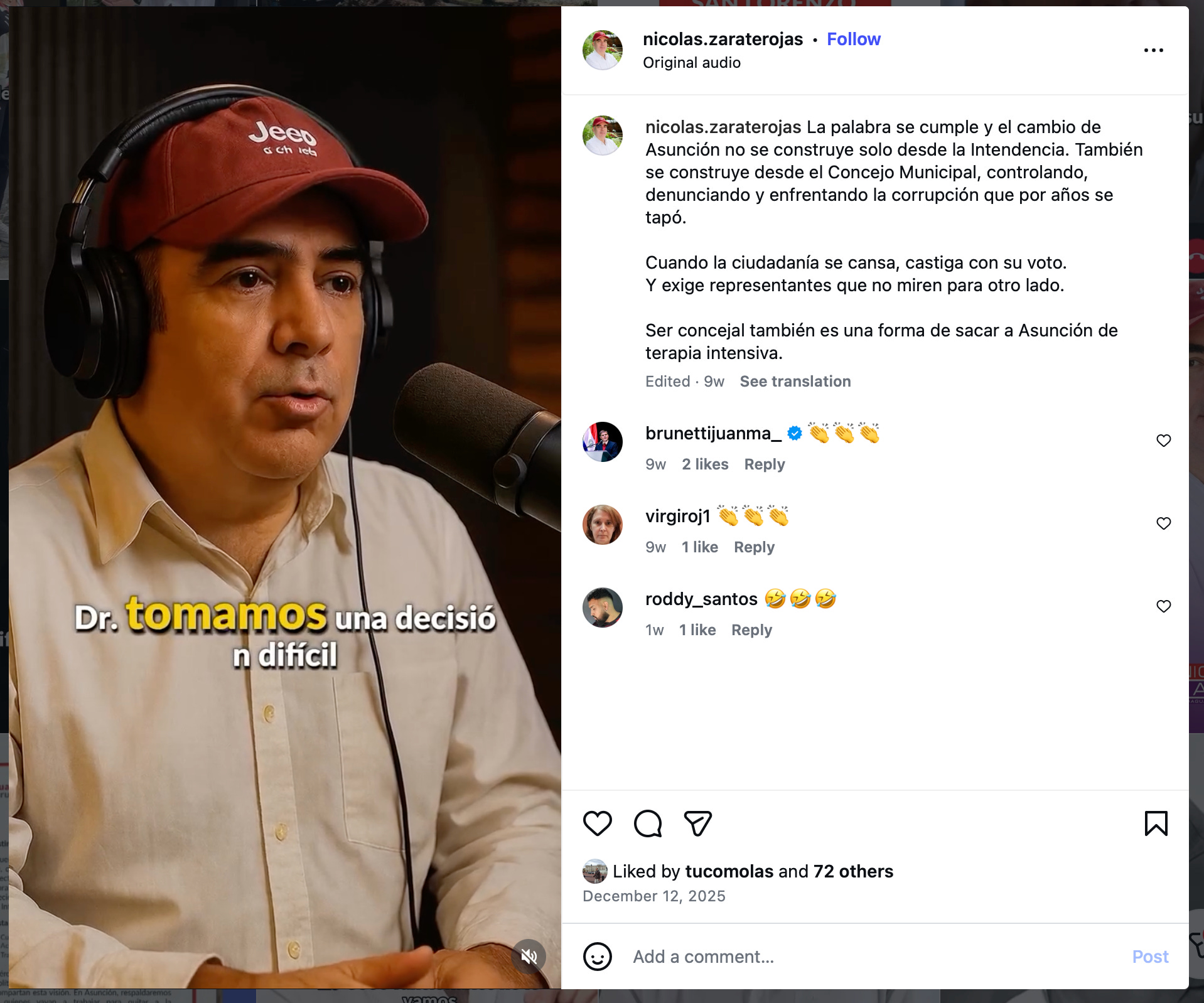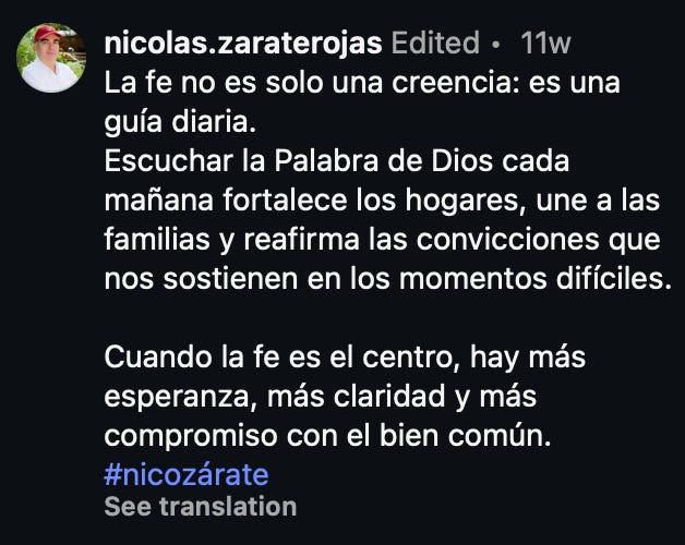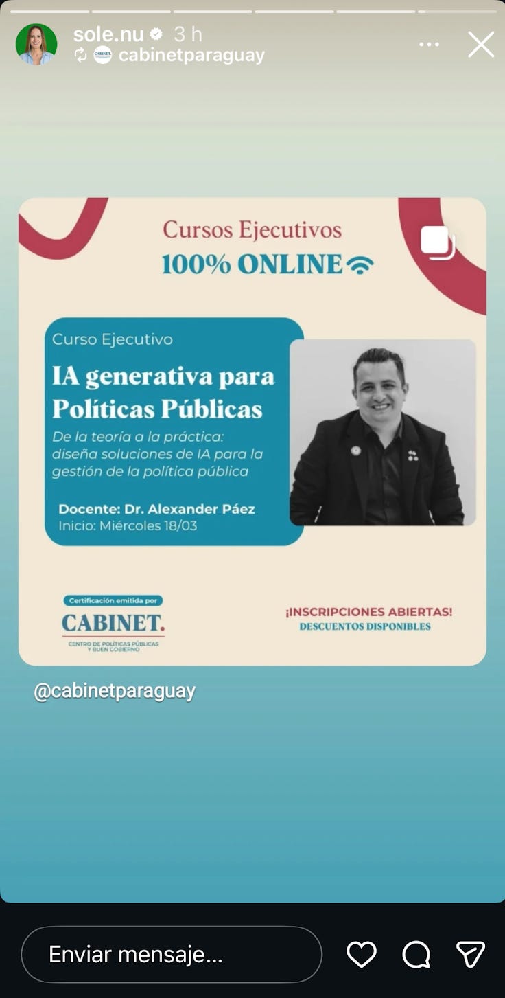 En Asunción - donde creo que todos tenemos al menos un conocido como precandidato a concejal - vemos de manera repetida como propaganda electoral de todo tipo emerge en nuestras pantallas. Un ejemplo es un anuncio hecho por un tal Nicolás Zárate hecho con IA mientras deslizamos historias un sábado cualquiera a las 9:00 AM.